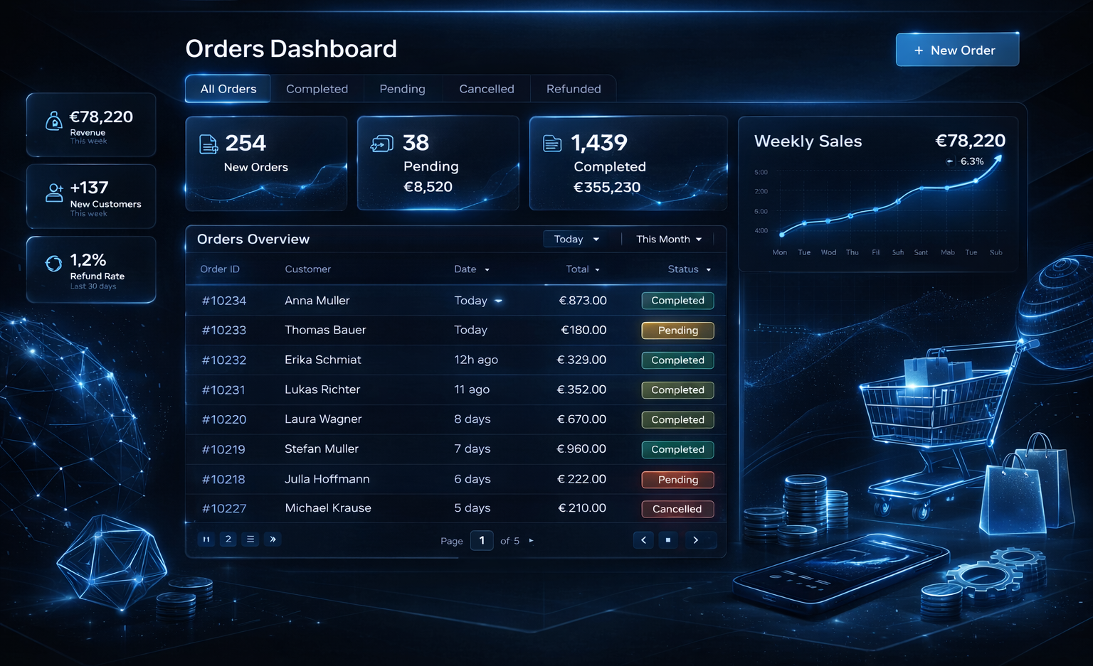 We create tailored online shops that fit your business model, not the other way around. Whether you sell physical products, digital goods or services, we design the storefront, checkout and back-office flows around your operations.
